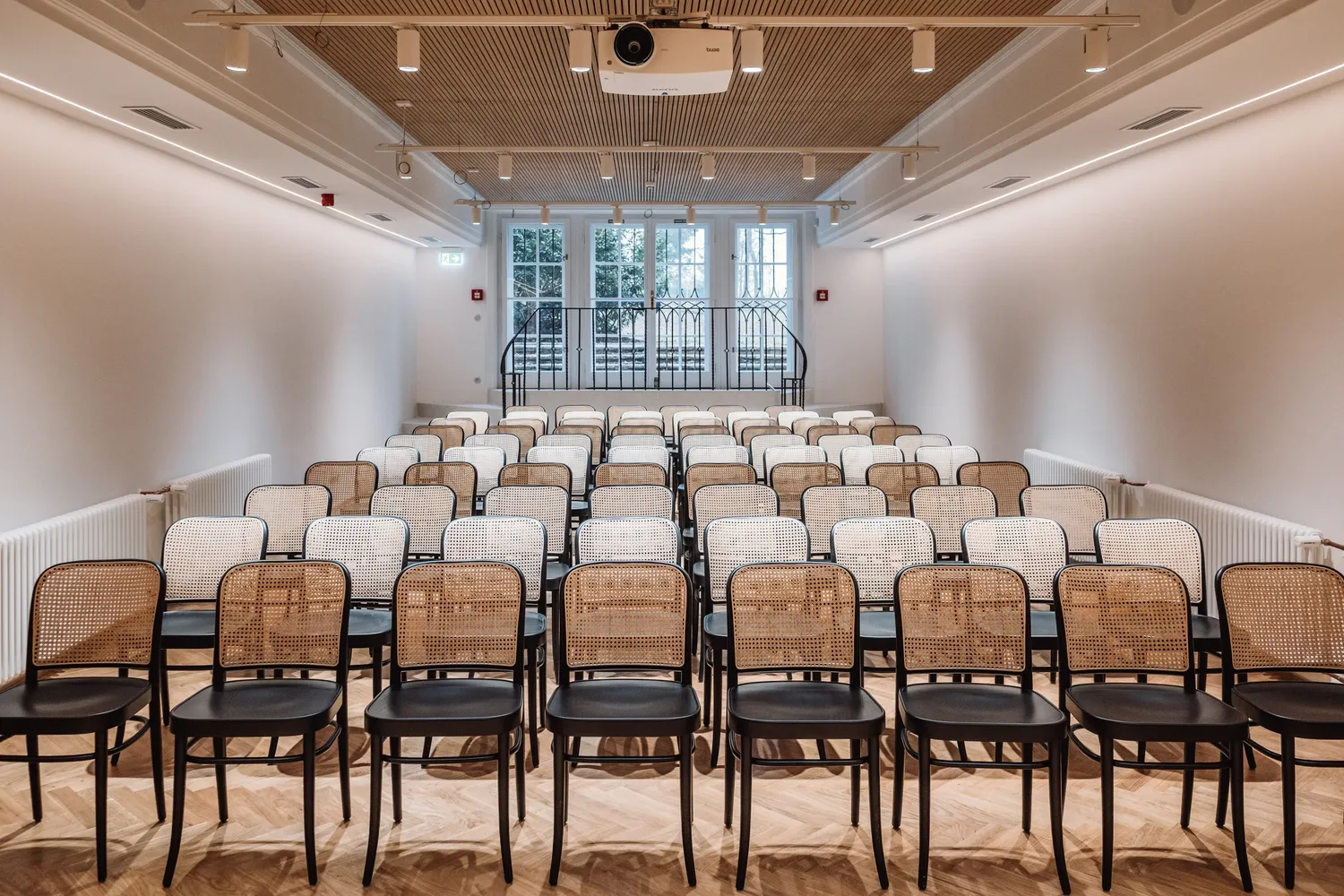 Na ploše 78 m² lze při divadelním uspořádání židlí zajistit sezení až pro 70 návštěvníků.